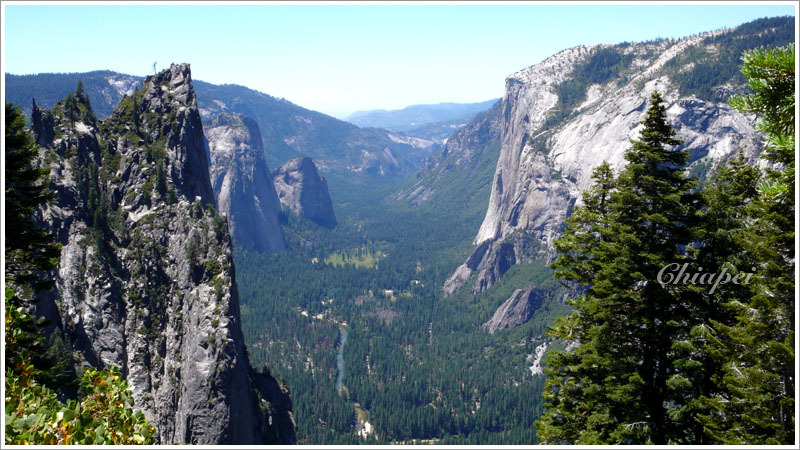 右邊的那一大片岩壁就是 El Capitan,世界知名的攀岩聖地