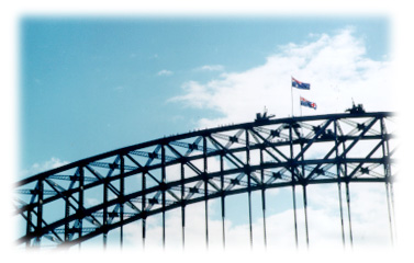 當然,這個爬橋的活動也為雪梨市製造了另一個原先料想不到的景觀 -- 從早上八點到晚上七點,抬頭仰望這港橋總是可以發現幾列小點點兒正努力向上爬著! ^_^
