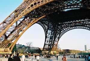 ![]() | 白天的艾菲爾鐵塔很不起眼, 黑黑髒髒的, 看起來就像是塊破銅爛鐵做成的廉價模型。 出了地鐵站,大老遠就可以看到它。 但要從平視到仰望, 還得要走好幾百公尺: |