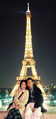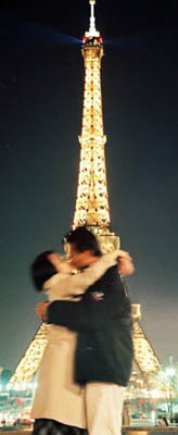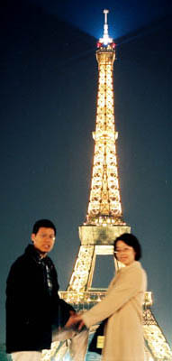 我們乘坐電梯到塔頂欣賞日落,看這浪漫之都慢慢被夜色籠罩。然後走到遙遠的公園噴水池另一頭,拍攝以下的「巴黎戀人」系列(嘻):